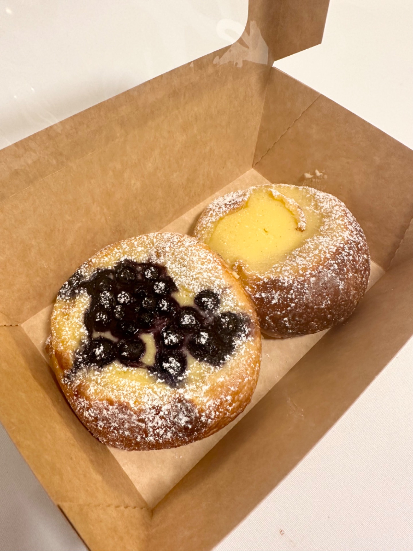 Pehmeä käsin leivottu pulla, jonka keskellä on itse tehtyä vaniljakreemiä sekä suomalaisia mustikoita.